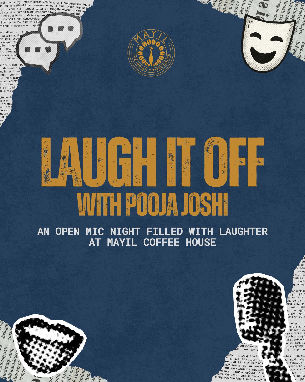 Come join us for a night full of laughter at Mayil Coffee on March 14th, 2026 at 7 PM (doors open at 6:30 PM ET).